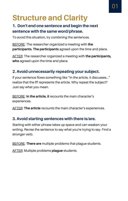 Packed with 36 practical fixes, this e-book addresses common writing challenges and equips graduate students and doctoral candidates with tools to communicate their ideas clearly and confidently.